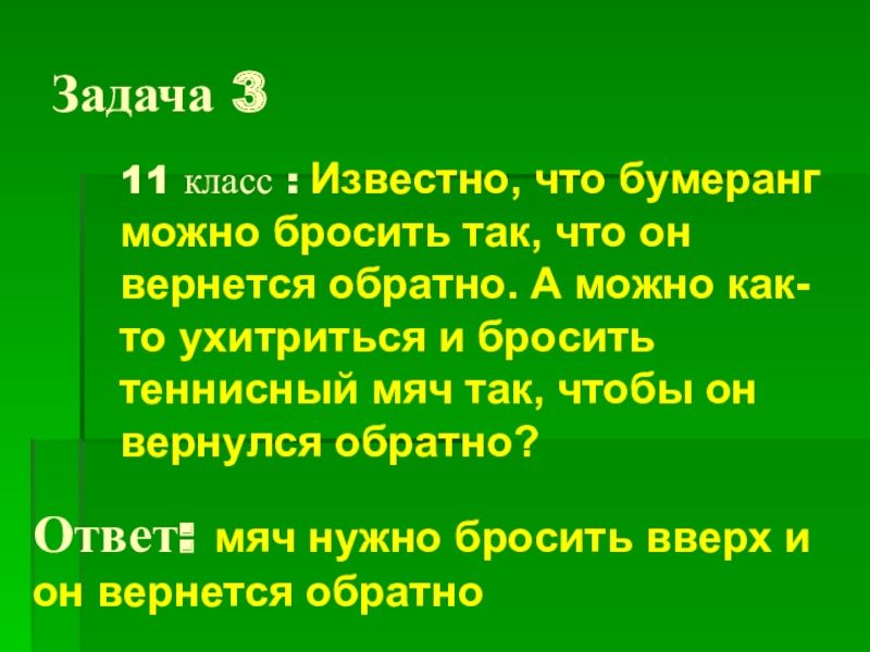 Ответ: мяч нужно бросить вверх и он вернется обратно