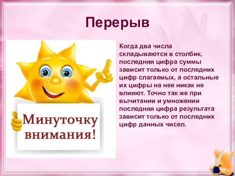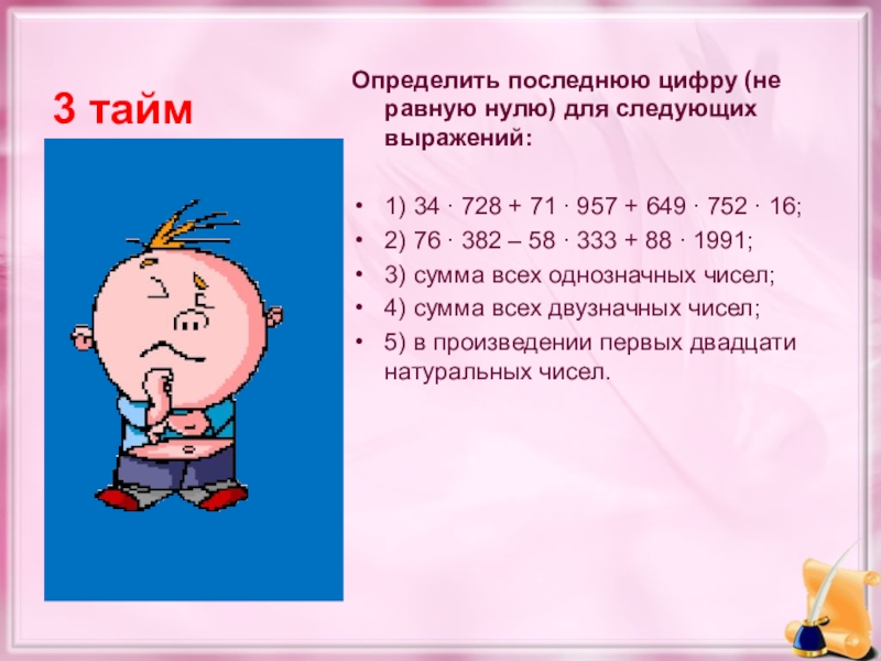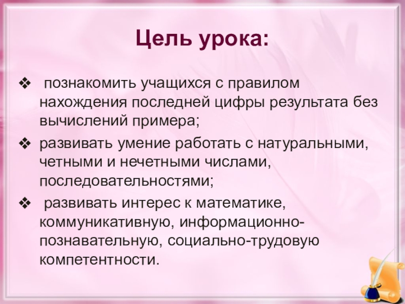познакомить учащихся с правилом нахождения последней цифры результата без