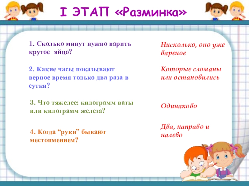 3. Что тяжелее: килограмм ваты или килограмм железа?