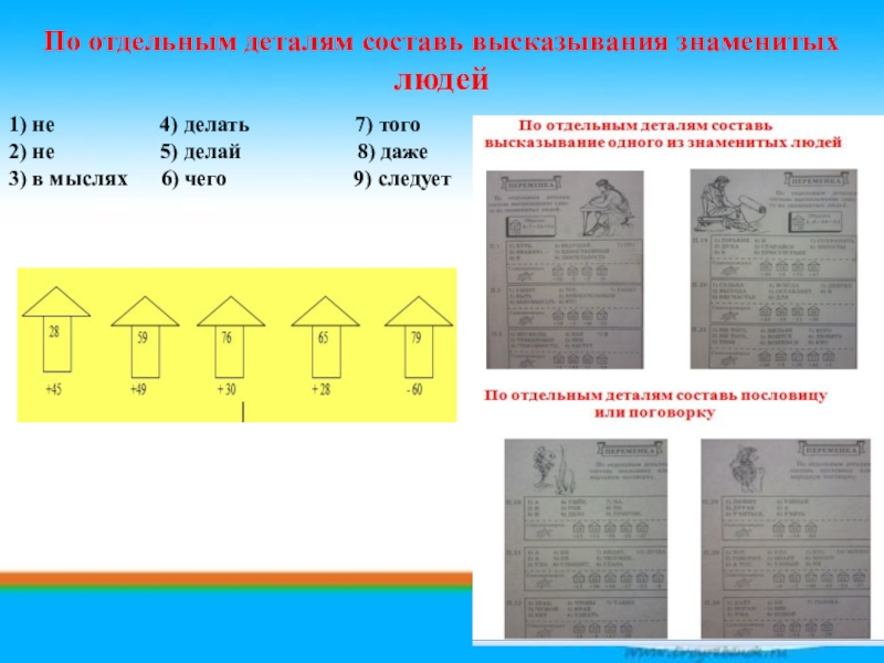 Слайд 11По отдельным деталям составь высказывания знаменитых людей