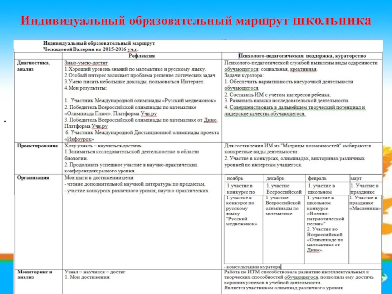 Слайд 5Индивидуальный образовательный маршрут школьника