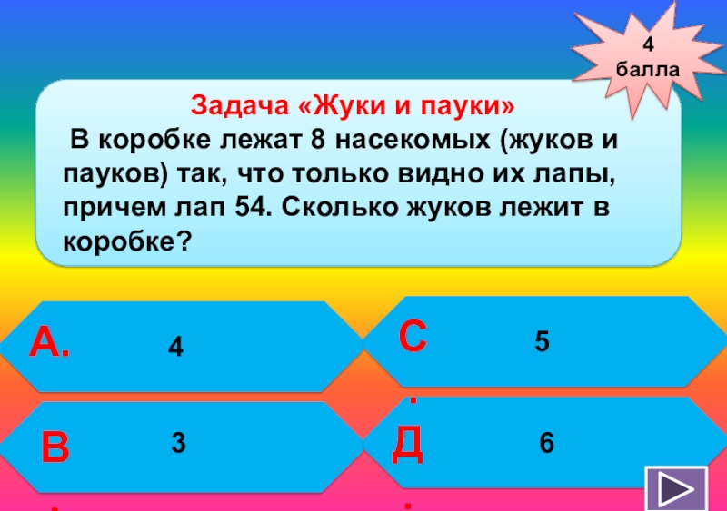 Задача «Жуки и пауки»