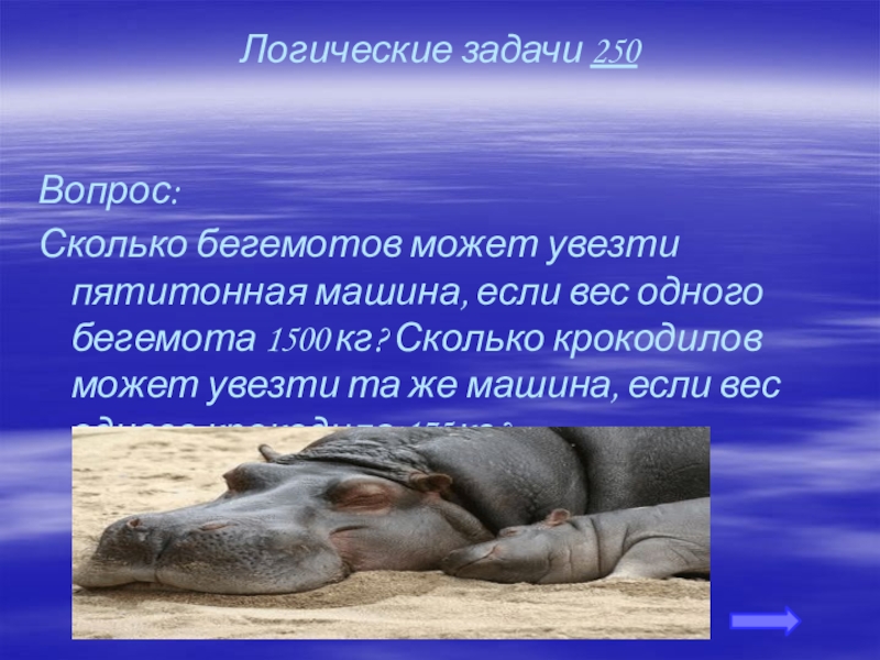 Сколько бегемотов может увезти пятитонная машина, если вес