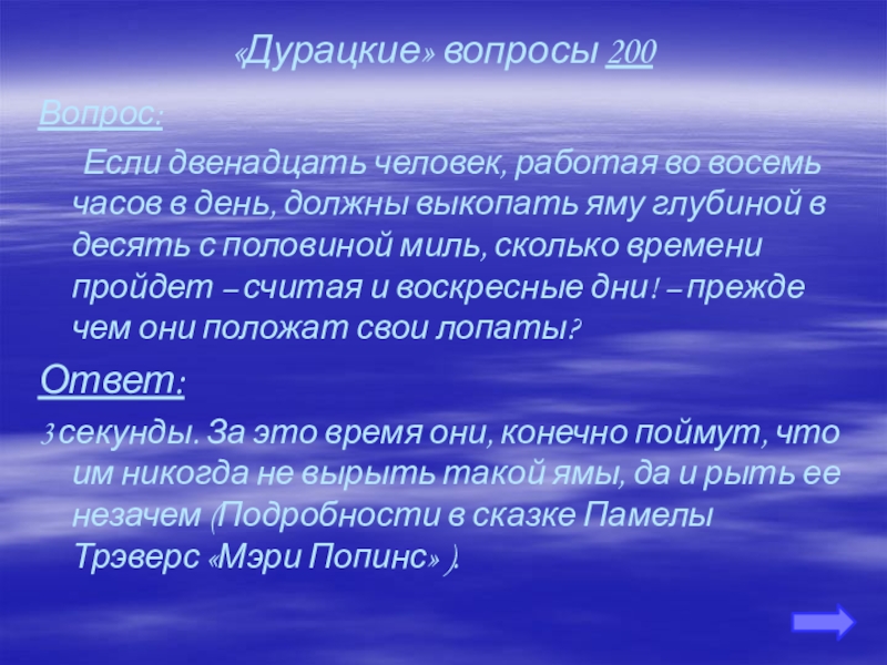 должны выкопать яму глубиной в десять с половиной миль, сколько времени пройдет – считая и воскресные дни! – прежде чем они положат свои лопаты?