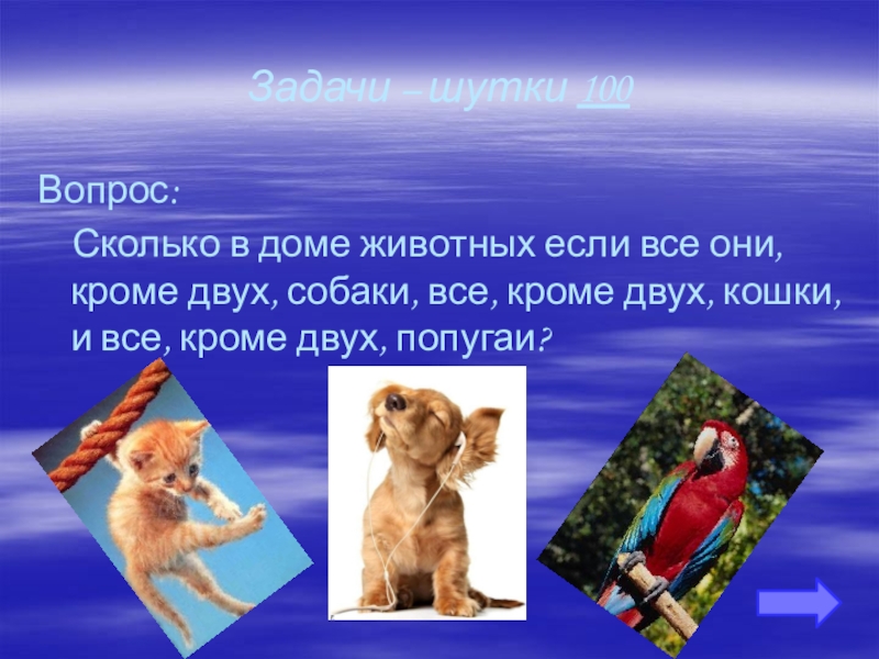 они, кроме двух, собаки, все, кроме двух, кошки, и все, кроме двух, попугаи?