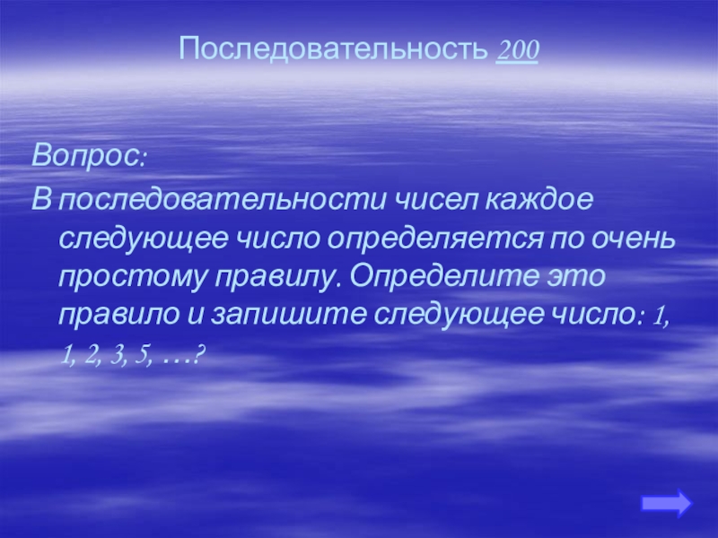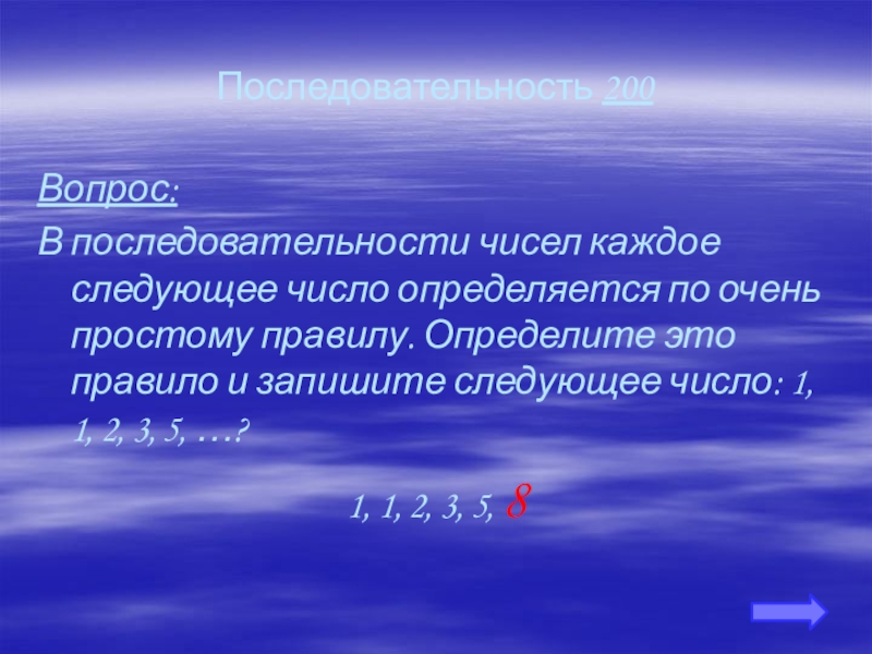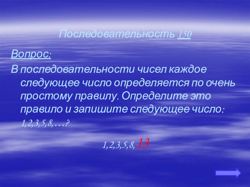 правилу. Определите это правило и запишите следующее число: 1, 1, 2, 3, 5, …?