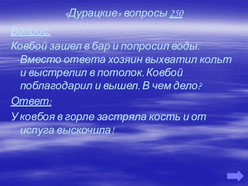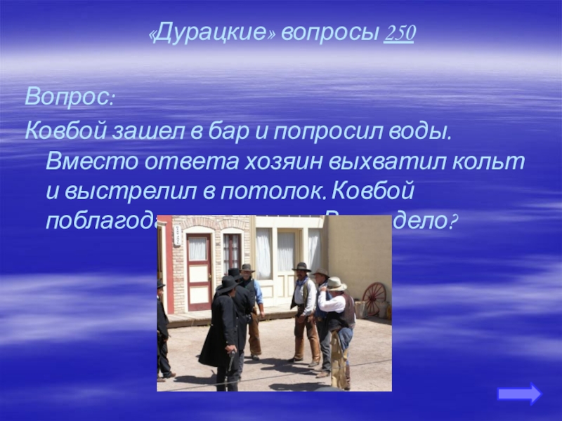 Ковбой зашел в бар и попросил воды. Вместо ответа