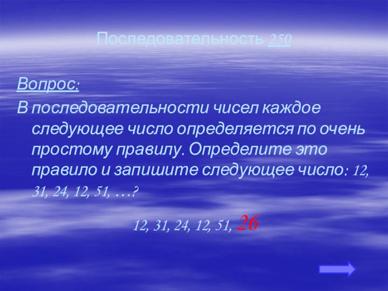 правилу. Определите это правило и запишите следующее число: 12, 31, 24, 12, 51, …?
