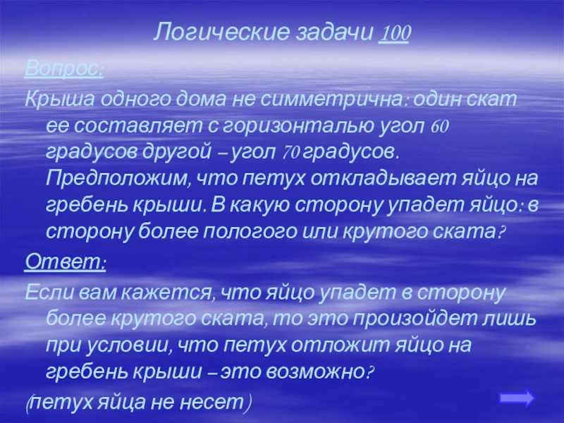 Если вам кажется, что яйцо упадет в сторону более крутого ската, то это произойдет лишь при условии, что петух отложит яйцо на гребень крыши – это возможно?