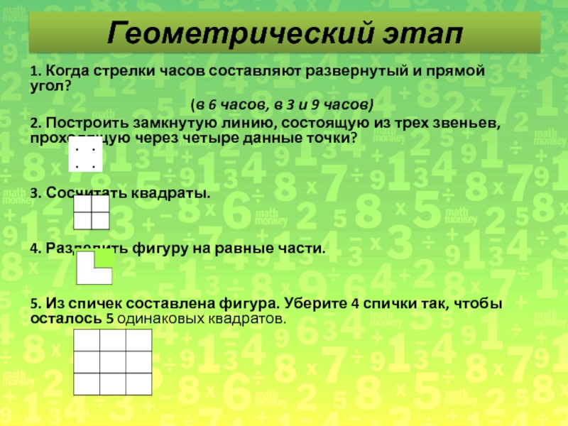 1. Когда стрелки часов составляют развернутый и прямой угол?