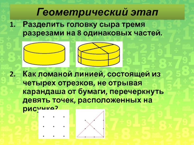 линией, состоящей из четырех отрезков, не отрывая карандаша от бумаги, перечеркнуть девять точек, расположенных на рисунке?