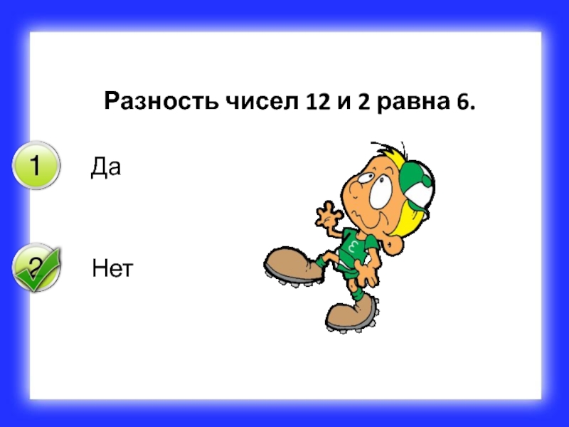 Слайд 10Разность чисел 12 и 2 равна 6.