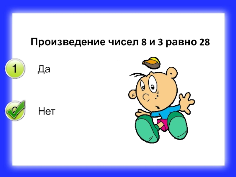 Слайд 2Произведение чисел 8 и 3 равно 28