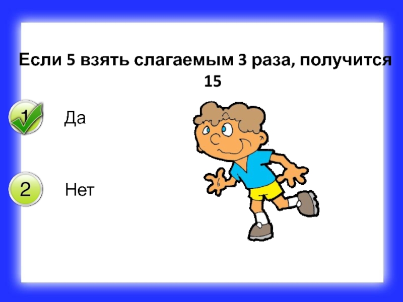 Слайд 4Если 5 взять слагаемым 3 раза, получится 15