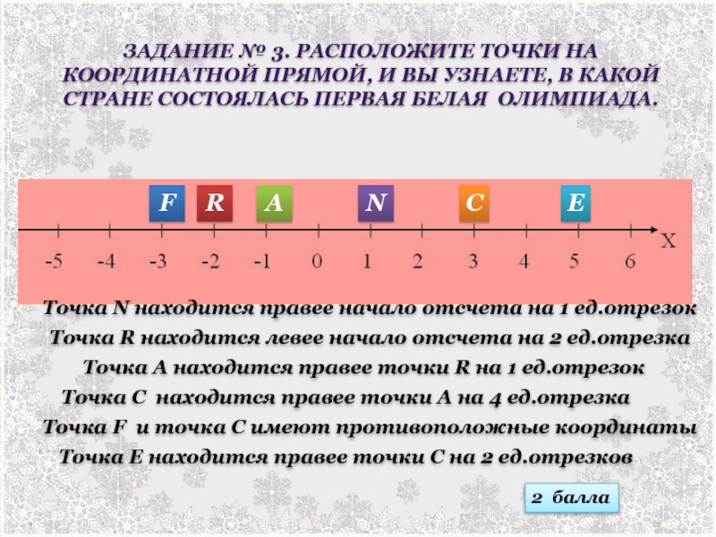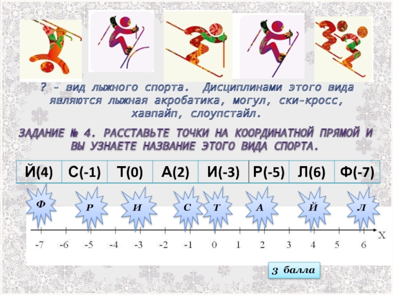ЗАДАНИЕ № 4. РАССТАВЬТЕ ТОЧКИ НА КООРДИНАТНОЙ ПРЯМОЙ И ВЫ УЗНАЕТЕ НАЗВАНИЕ ЭТОГО ВИДА СПОРТА.