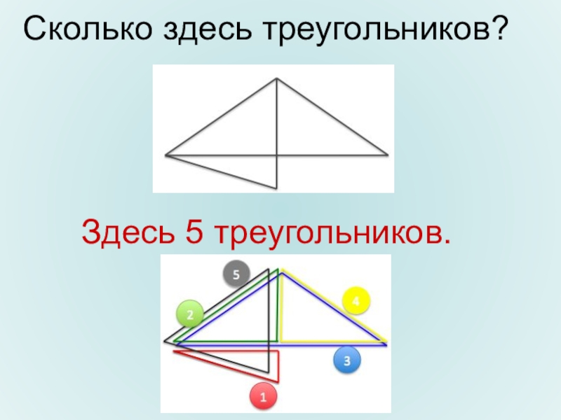 Слайд 35Сколько здесь треугольников? Здесь 5 треугольников.