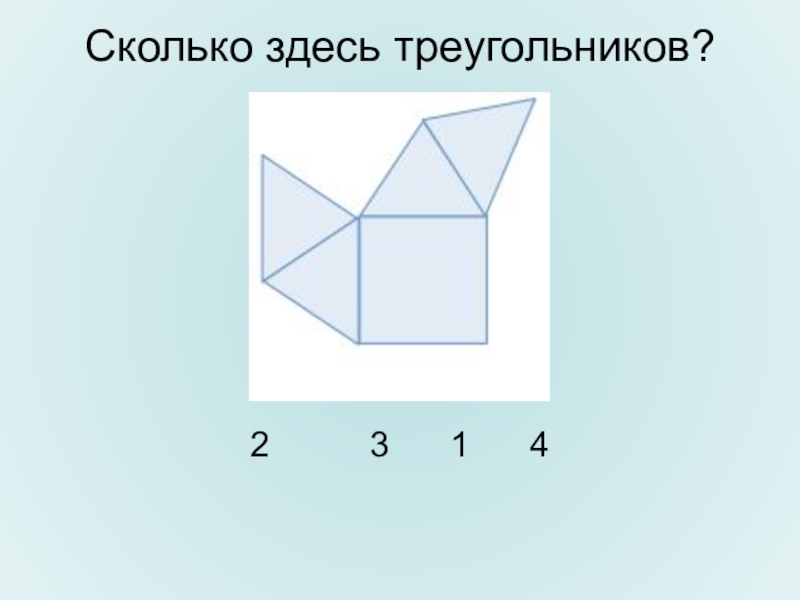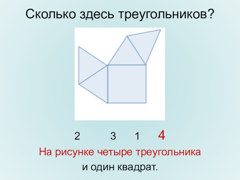 Сколько здесь треугольников? 2			3		1		4На рисунке четыре треугольника и один квадрат.