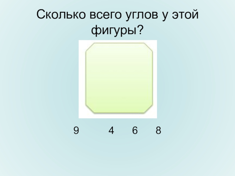 Сколько всего углов у этой фигуры? 9			4		6		8