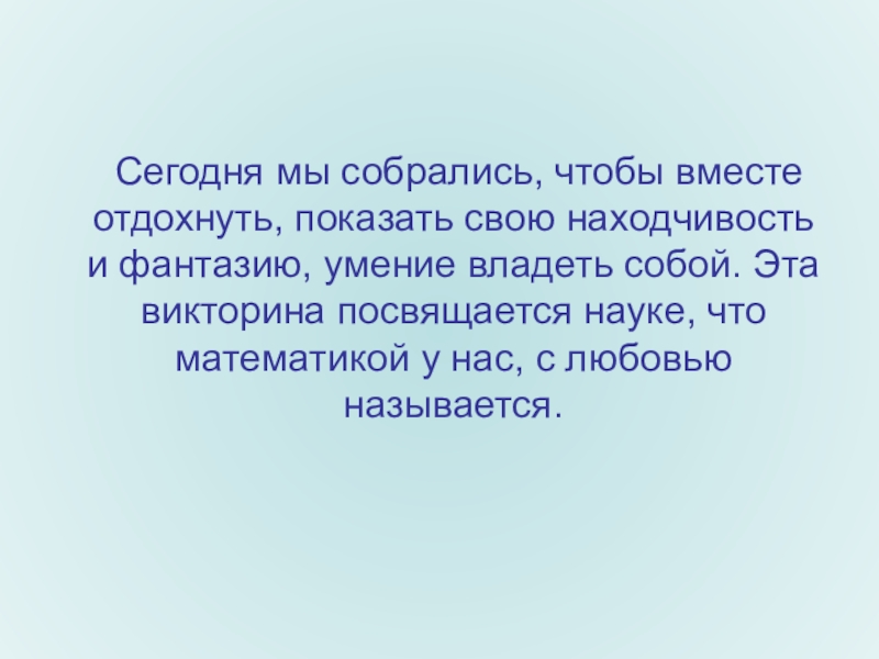 умение владеть собой. Эта викторина посвящается науке, что математикой у нас, с любовью называется.