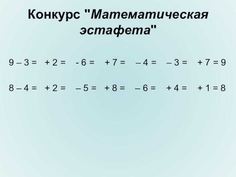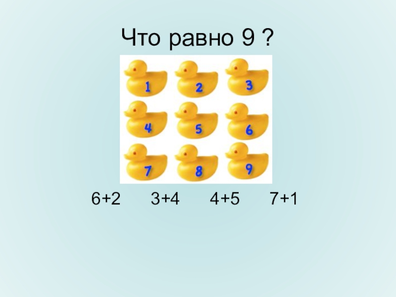 Что равно 9 ? 6+2		3+4		4+5		7+1