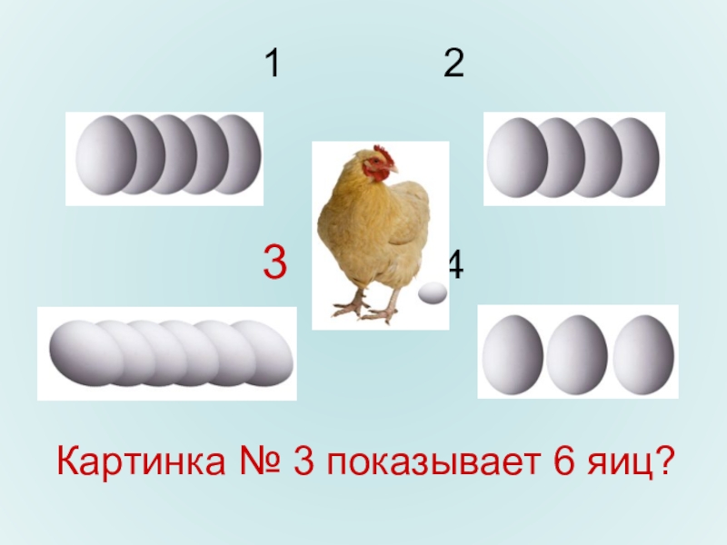 Слайд 371 2 3 4 Картинка № 3 показывает 6 яиц?