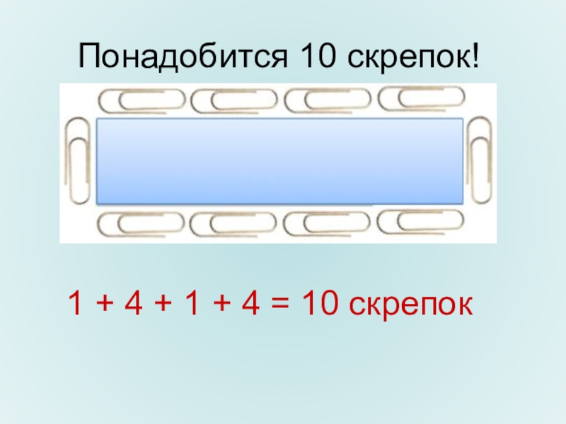 Слайд 61Понадобится 10 скрепок! 1 + 4 + 1 + 4 =