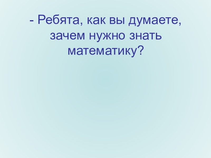 - Ребята, как вы думаете, зачем нужно знать математику?