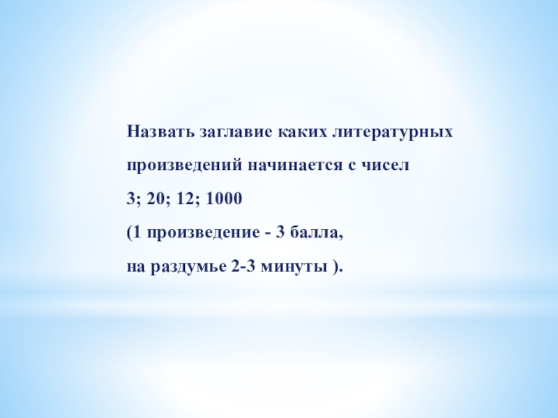 Слайд 16Назвать заглавие каких литературных произведений начинается с чисел