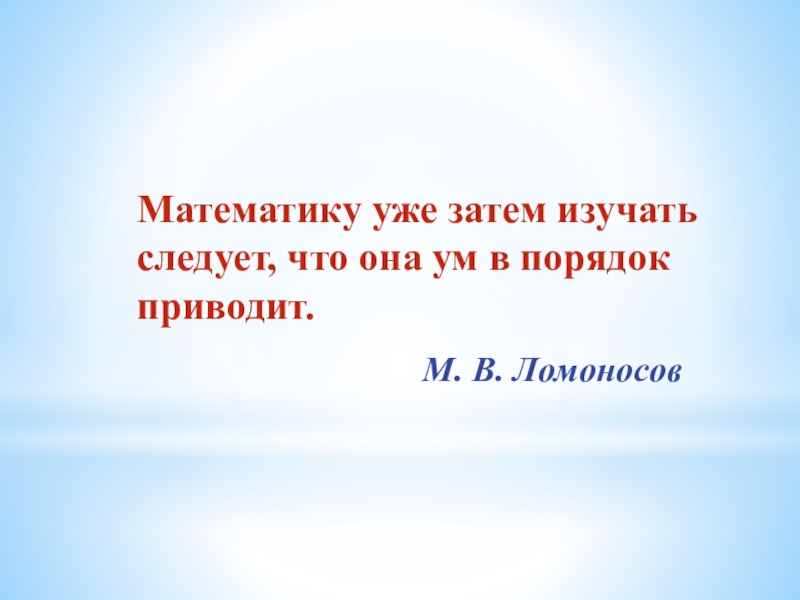 Слайд 2Математику уже затем изучать следует, что она ум в порядок приводит.