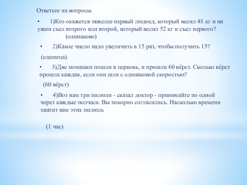• 1)Кто окажется тяжелее первый людоед, который весил 48 кг
