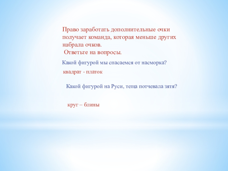 Слайд 19Право заработать дополнительные очки получает команда, которая меньше других набрала очков.