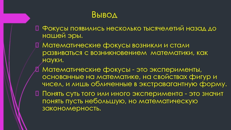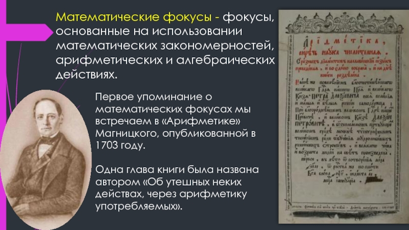 Математические фокусы возникли и стали развиваться с возникновением математики, как науки.