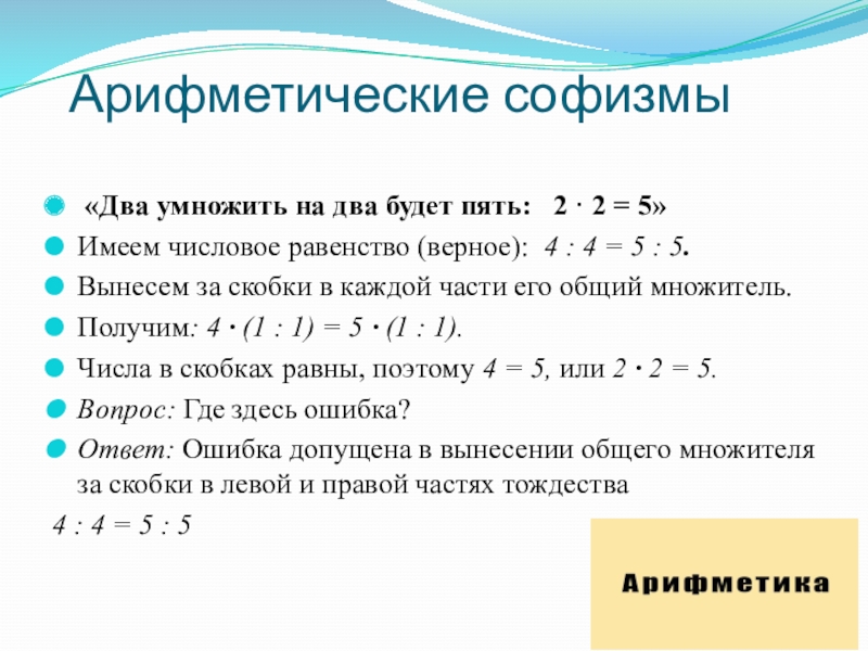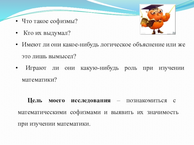 Цель моего исследования – познакомиться с математическими софизмами и выявить их значимость при изучении математики.