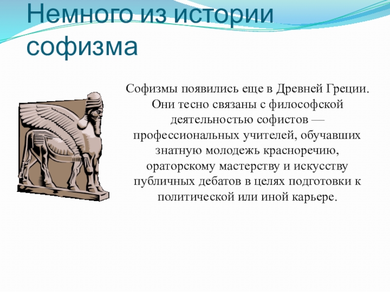 Термин “софизм” впервые ввел Аристотель, охарактеризовавший софистику как мнимую, а не действительную мудрость.