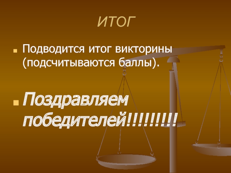 Подводится итог викторины (подсчитываются баллы).