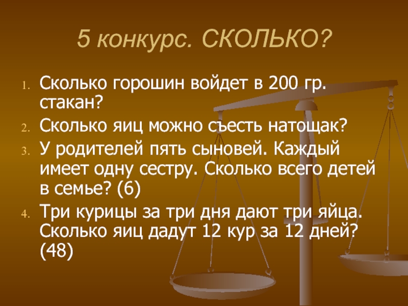 Слайд 155 конкурс. СКОЛЬКО?