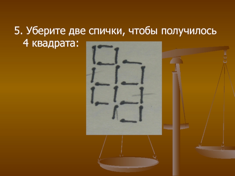 5. Уберите две спички, чтобы получилось 4 квадрата: