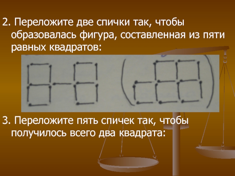 2. Переложите две спички так, чтобы образовалась фигура, составленная из пяти