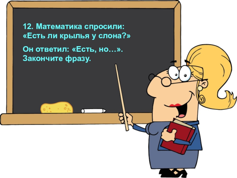 12. Математика спросили: «Есть ли крылья у слона?»Он ответил: «Есть, но…». Закончите фразу.
