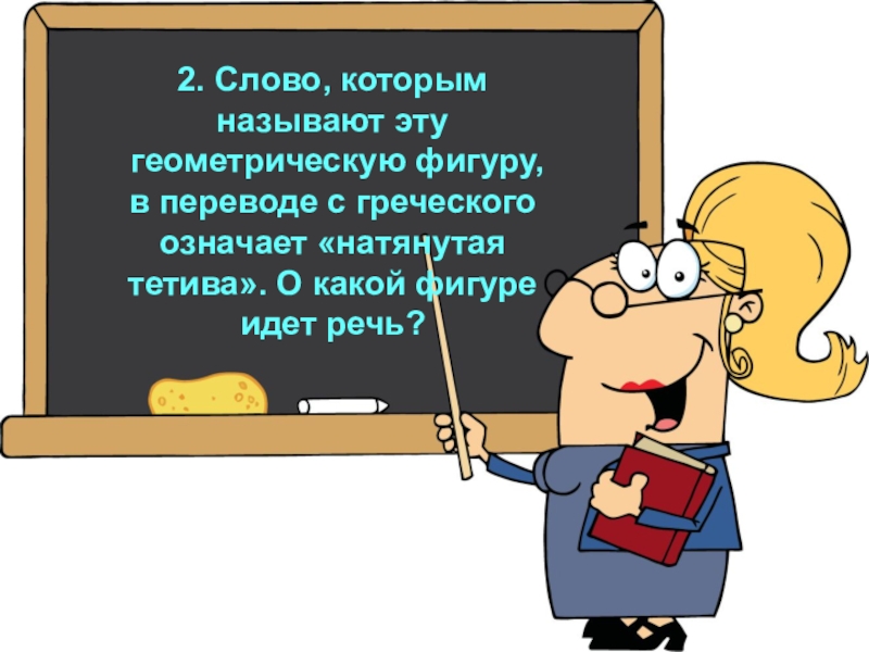 2. Слово, которым называют эту геометрическую фигуру, в переводе с греческого означает «натянутая тетива». О какой фигуре