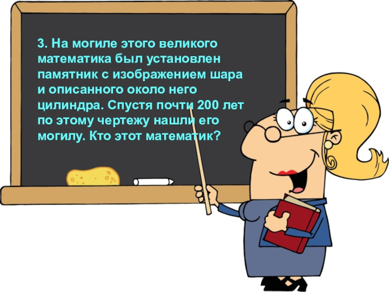 3. На могиле этого великого математика был установлен памятник с изображением шара и описанного около него цилиндра.