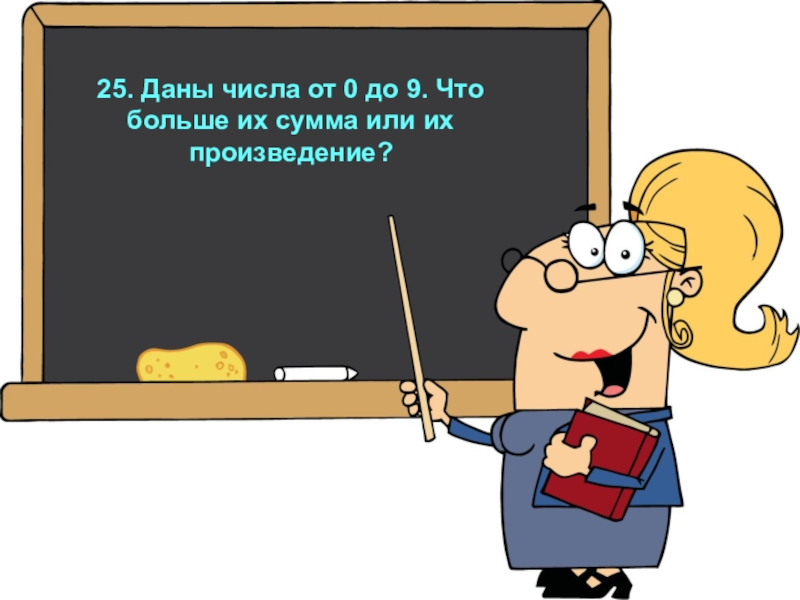 25. Даны числа от 0 до 9. Что больше их сумма или их произведение?