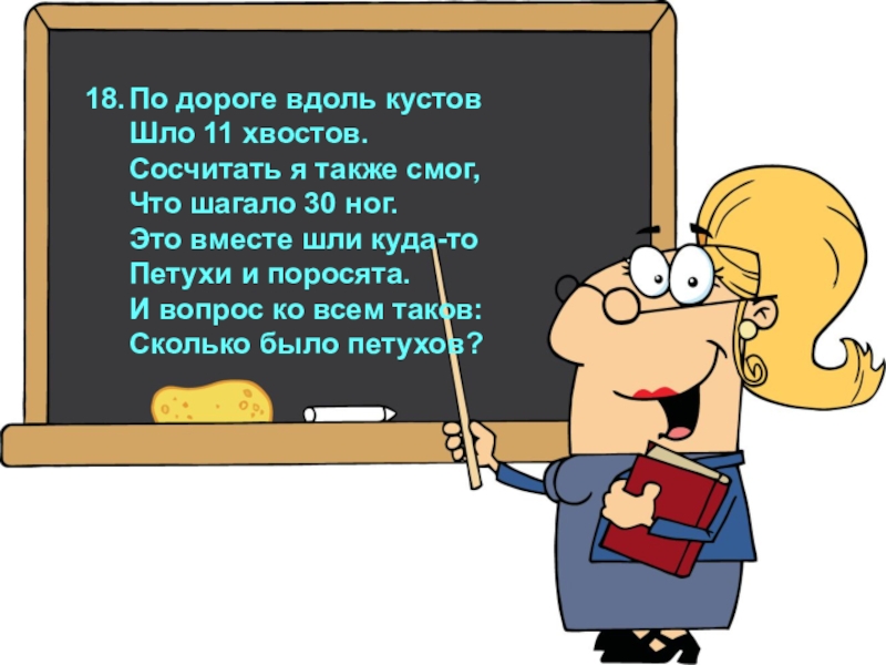 18. По дороге вдоль кустов Шло 11 хвостов. Сосчитать я также смог, Что шагало 30