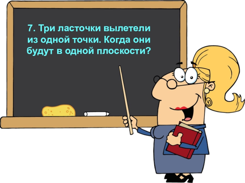 7. Три ласточки вылетели из одной точки. Когда они будут в одной плоскости?