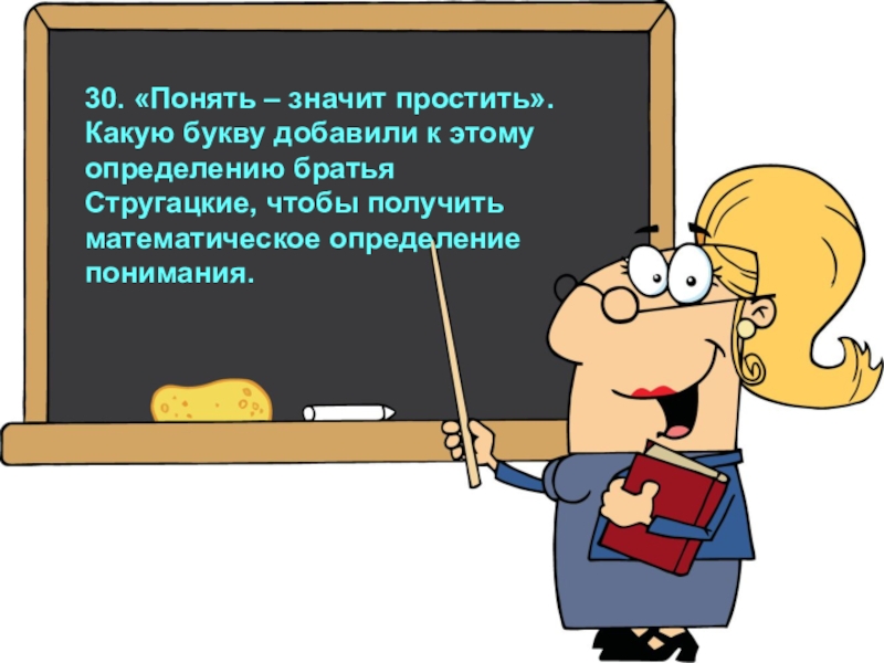 30. «Понять – значит простить». Какую букву добавили к этому определению братья Стругацкие, чтобы получить математическое определение