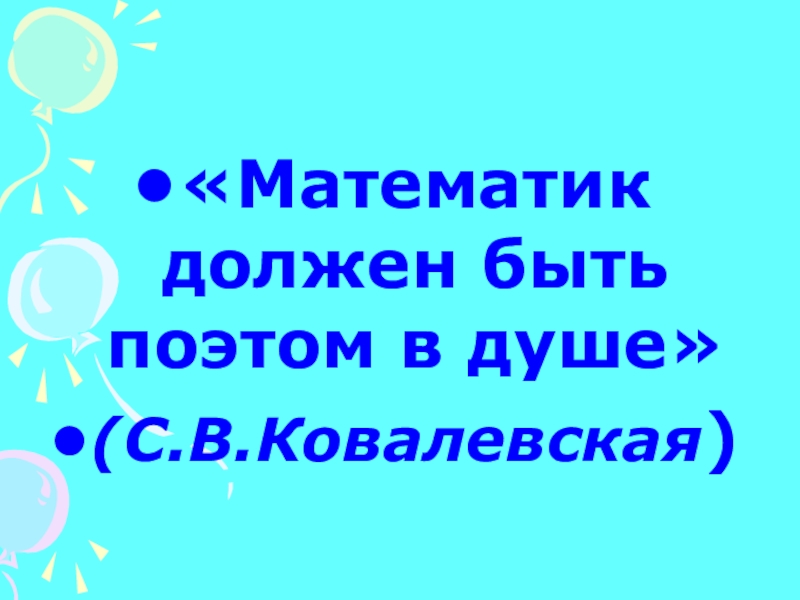 «Математик должен быть поэтом в душе»(С.В.Ковалевская)