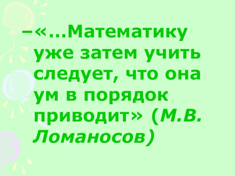«…Математику уже затем учить следует, что она ум в порядок приводит» (М.В.Ломаносов)