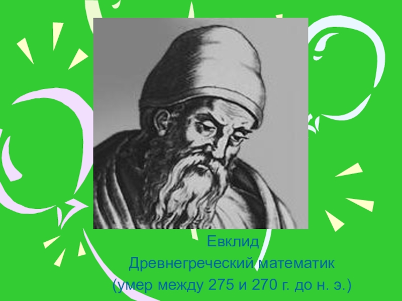 ЕвклидДревнегреческий математик(умер между 275 и 270 г. до н. э.)