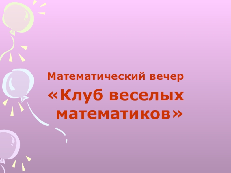 Презентация, доклад на тему математический вечер Клуб веселых математиков