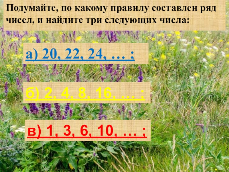 в) 1, 3, 6, 10, 15, 21,28 ;